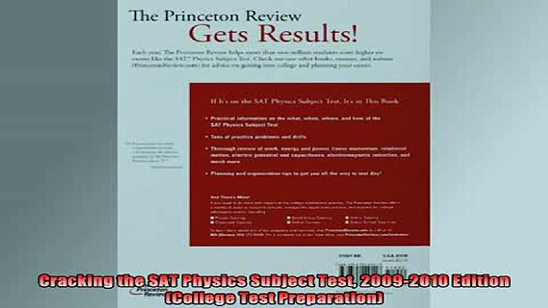 2013 14 cracking the sat chemistry subject test 3 and answersexplanations. College board recommends that you have at least one year of college prep physics before taking the subject test as well as courses in algebra and trigonometry and experience in the lab. Sat ii subject test. Equip yourself to ace the sat physics subject test with the princeton reviews comprehensive study guideincluding 2 full length practice tests thorough reviews of key physics topics and targeted strategies for every question type.