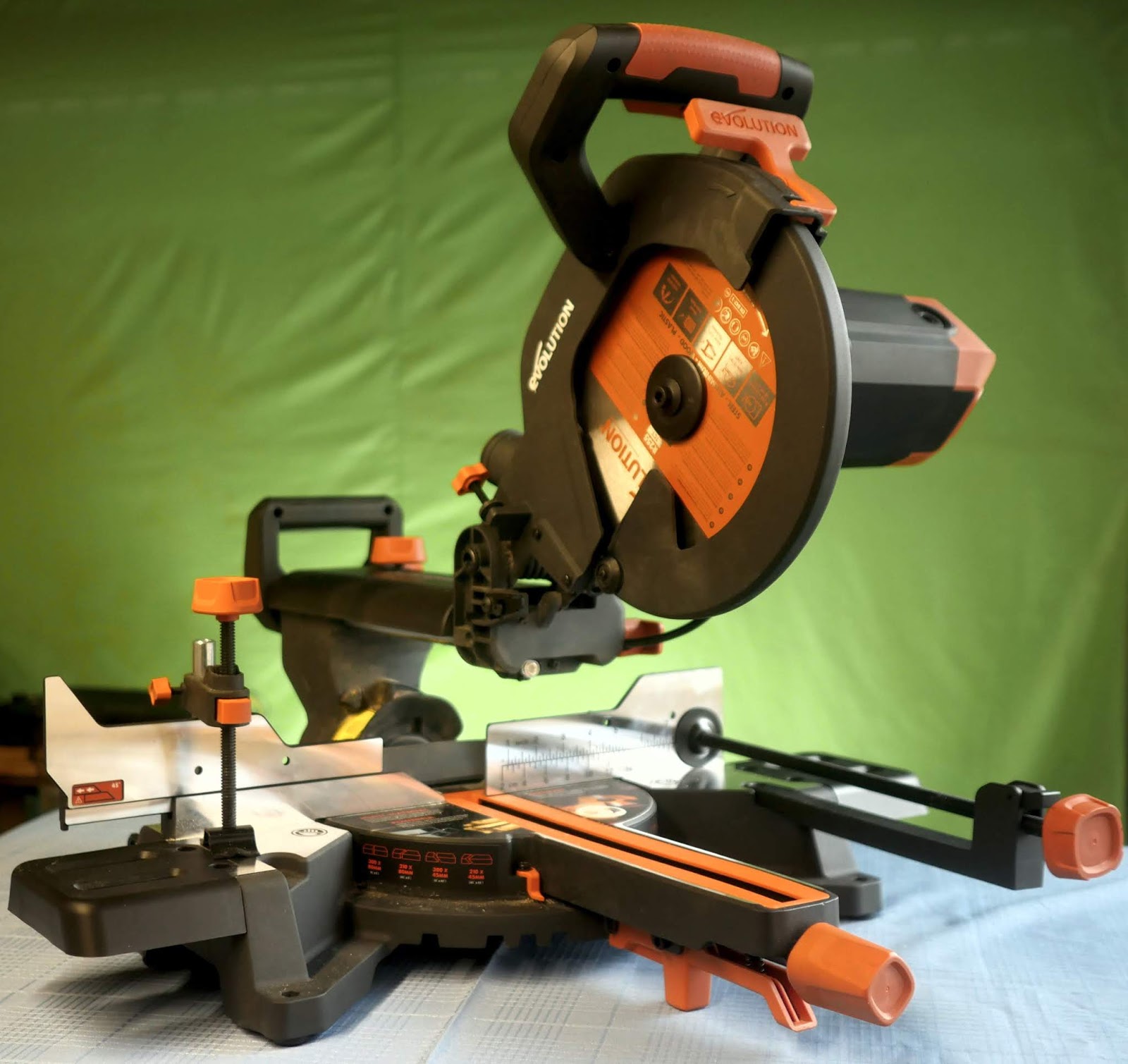 Evolution Power Tools R210sms 300 Sliding Mitre Saw With Multi Material Cutting 45 Degree Bevel 50 Degree Mitre 300 Mm Slide 1500 W 230 V Amazon Co Uk Diy Tools