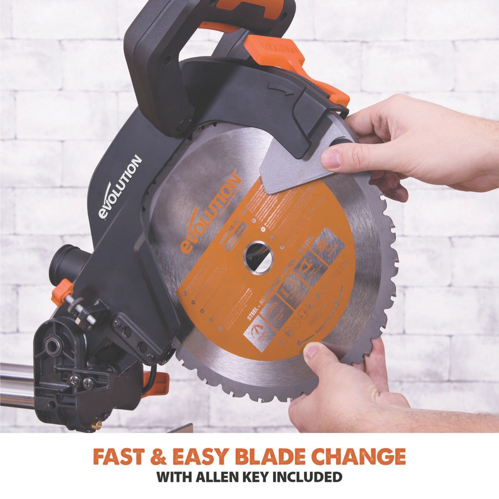 Evolution R210sms 210mm Electric Single Bevel Sliding Compound Mitre Saw 230v Mitre Saws Screwfix Com